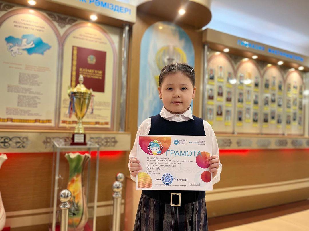 Көкшетау қаласында өткен “Зерде” ғылыми жобалар байқауының республикалық кезеңіне гимназиямыздың 2 оқушысы қатысып, 4 “ғ” сынып оқушысы Аманғос Адия 3-орын, 4 “г” сынып оқушысы Бейбіт Айзере арнайы грамотамен марапатталды. Кішкентай ғалымдарымызды үлкен жетістігімен шын жүректен құттықтаймыз!