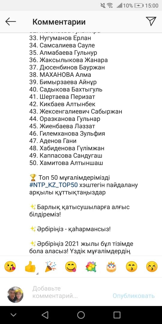 Қайырлы күн, достар! Бүгін біз сіздермен керемет жаңалықты бөліскіміз келіп отыр. Мектебіміздің мақтан тұтар ұстаздарының бірі, тарих пәнінің мұғалімі Самсалиева Сәуле апайымыз "Қазақстан мұғалімі" Ұлттық байқауының екінші кезеңіне өтуімен шын жүректен құттықтаймыз.