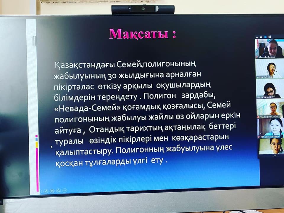 Бүгін 10-сыныптар арасында, Тәуелсіздігіміздің 30 жылдығына орай “ Семей ядролық полигонының жабылуына 30 жыл” тақырыбында пікірталас өтті. Пікірталаста оқушылар белсенді қатысып, “Семей ядролық полигоны” туралы жинақтаған ақпараттарымен бөлісе алды.