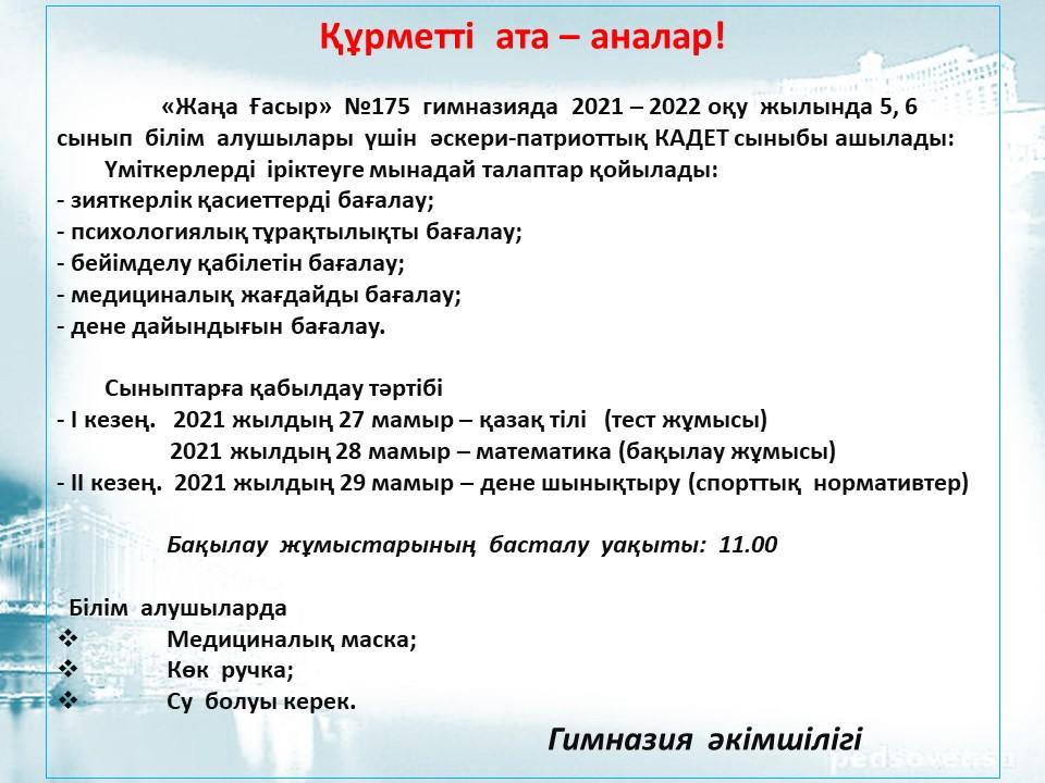 Құрметті, №175 Гимназия ұжымы, ұстаздар, ата-аналар және оқушылар!