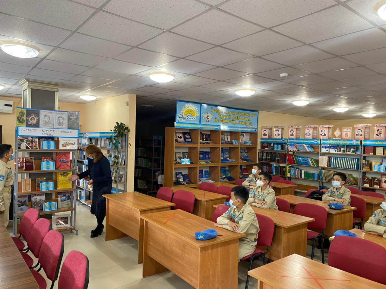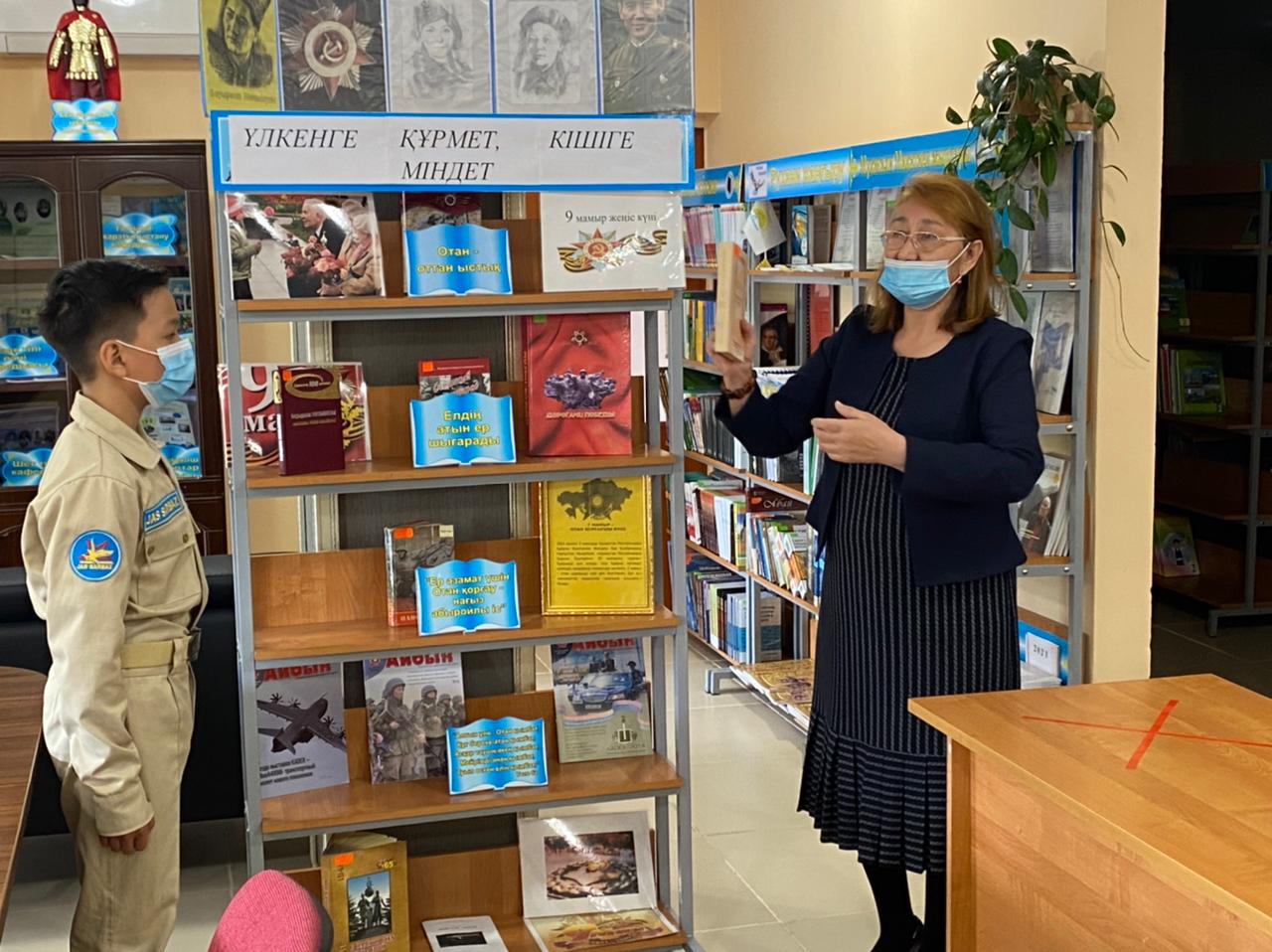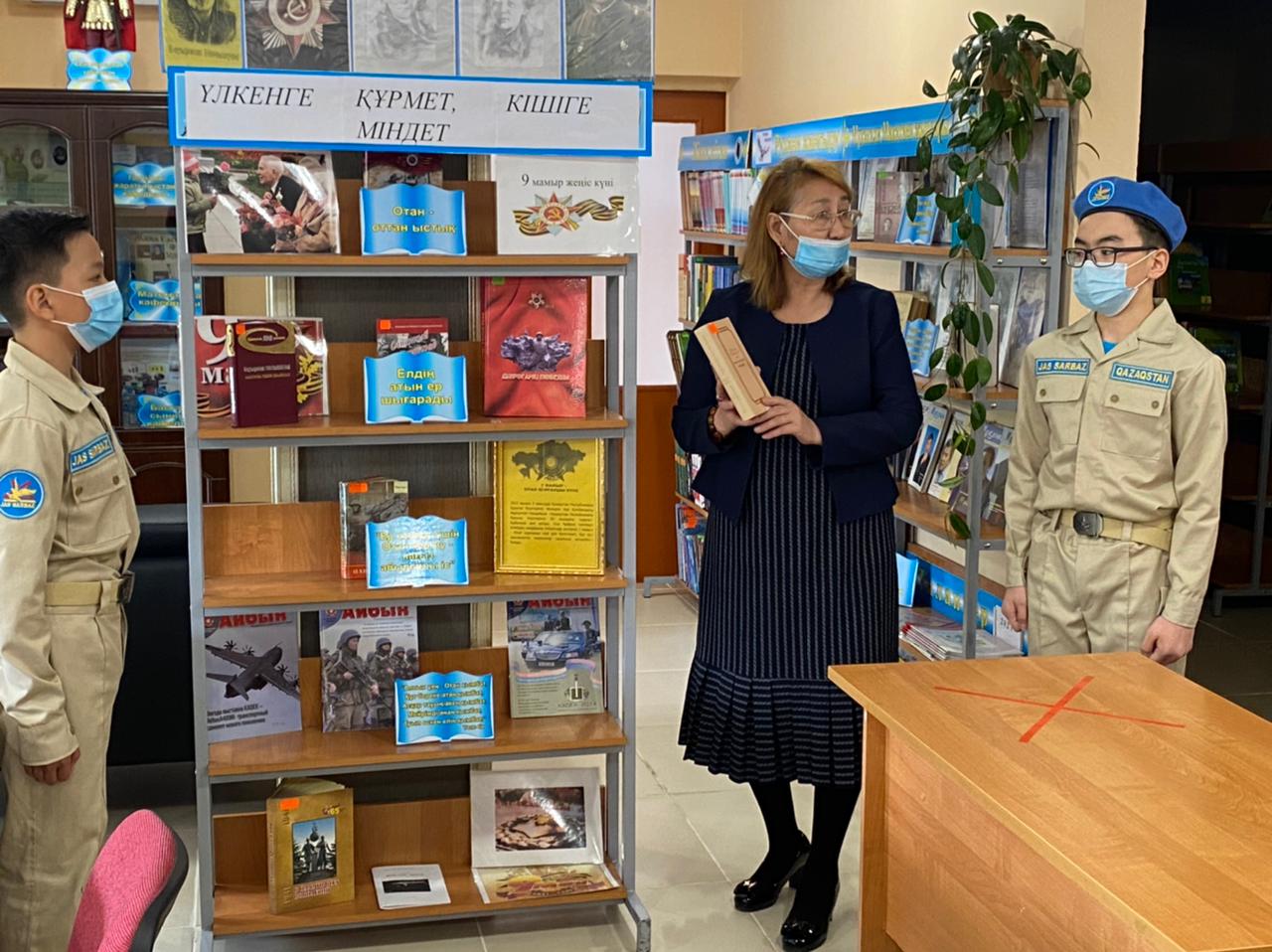 Бүгін гимназияда дәстүрлі форматта “7 мамыр - Отан қорғаушылар күніне “арналған “Үлкенге- құрмет, кішіге міндет” тақырыбында кітапханада кітапханашы Ақылбаева Гүлмира апайымыз КАДЕТ сыныбымен көрме ұйымдастырды. Көрмеден оқушылар жаңа ақпарат алып, өз ойларымен бөлісті.