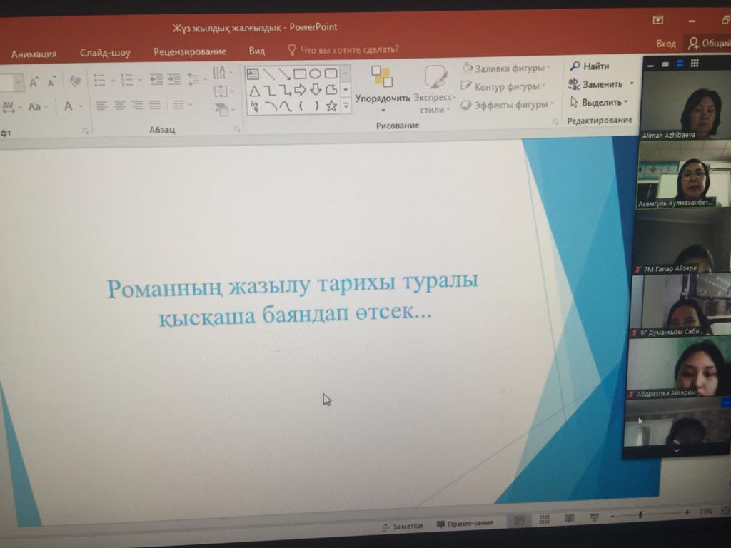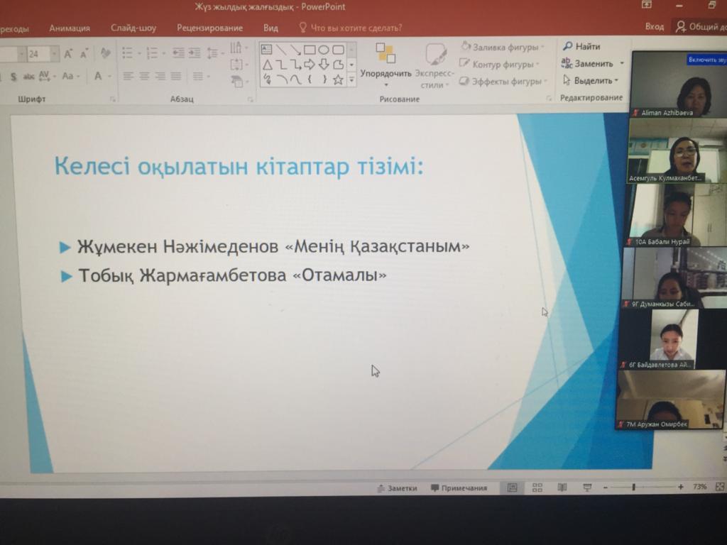 14.05.2021 жылы гимназиямызда "Тәуелсіздігіміздің 30 жылдығына - 30 кітап" рухани-мәдени акциясы аясында колумбиялық жазушы Габриэль Гарсиа Маркестің "Жүз жылдық жалғыздық" романы бойынша оқырмандар конференциясы онлайн форматта өтті. Конференция мақсаты: аударма желісімен таныса отырып, адам бойына керекті қайсарлықты үйрену және отансүйгіштік қасиетті ұлықтай білу.