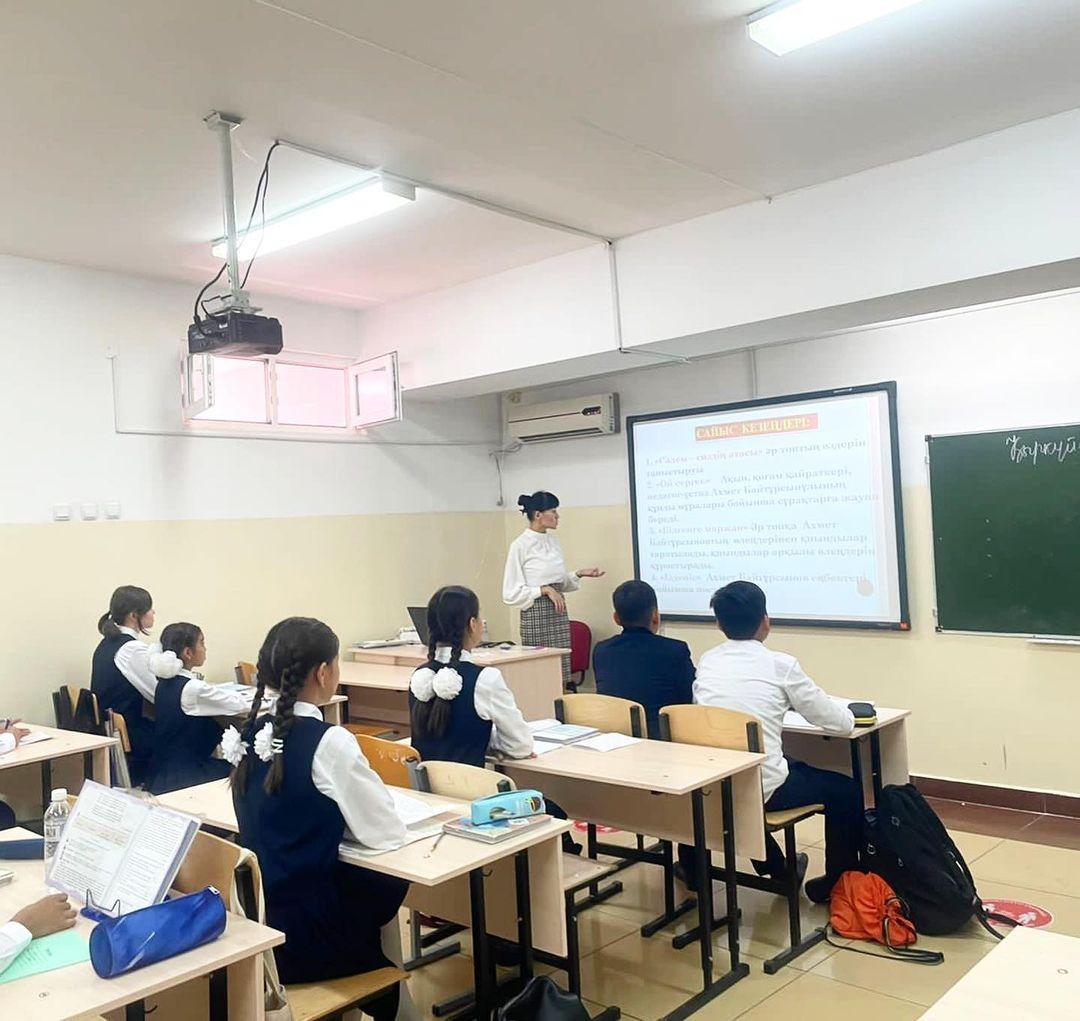 Қазақ тілі мен әдебиеті пәнінің мұғалімі Бектанова Зульфия 6 “ә “ сынып оқушыларымен “Балалар оқуға бар, жатпа қарап!” тақырыбында зияткерлік сайысын өткізді. Сабақ барысында оқушылар өздерінің білімін көрсете отырып, әртүрлі топтық, жұптық және жеке тапсырмалар орындады. Сабақ қызықты өтті, оқушылар тапсырманы белсенді орындап, қарсылас топтардың жауаптарын бағалады.