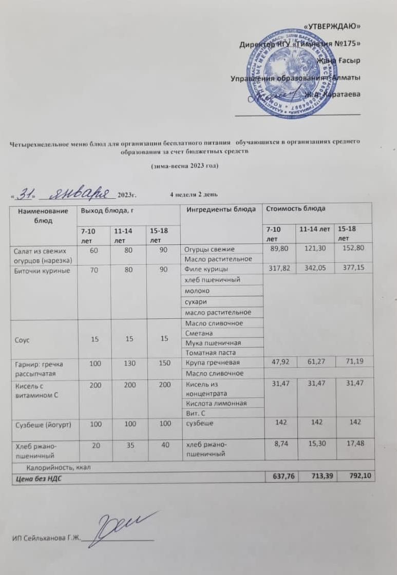 Ас мәзірі 2024-2025