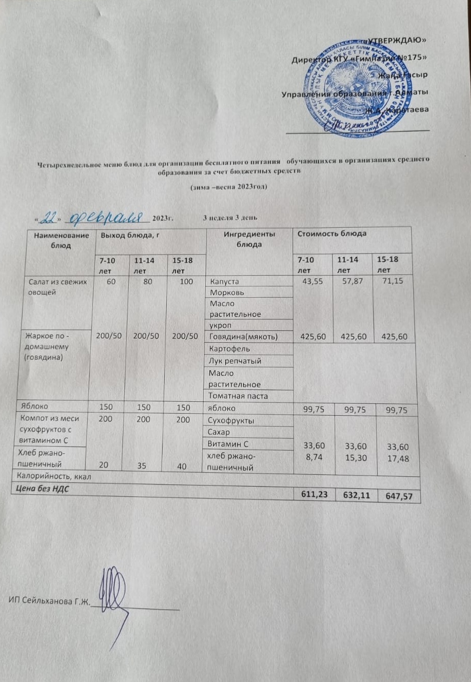 » Ас мәзірі-2022-2023