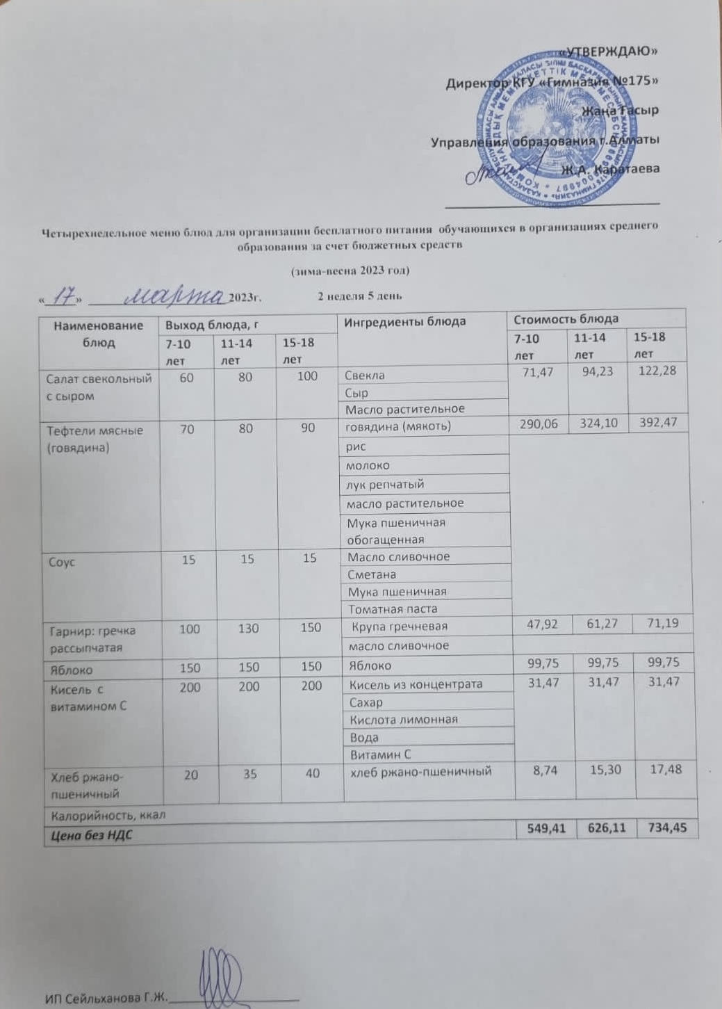 Ас мәзірі 2023-2024