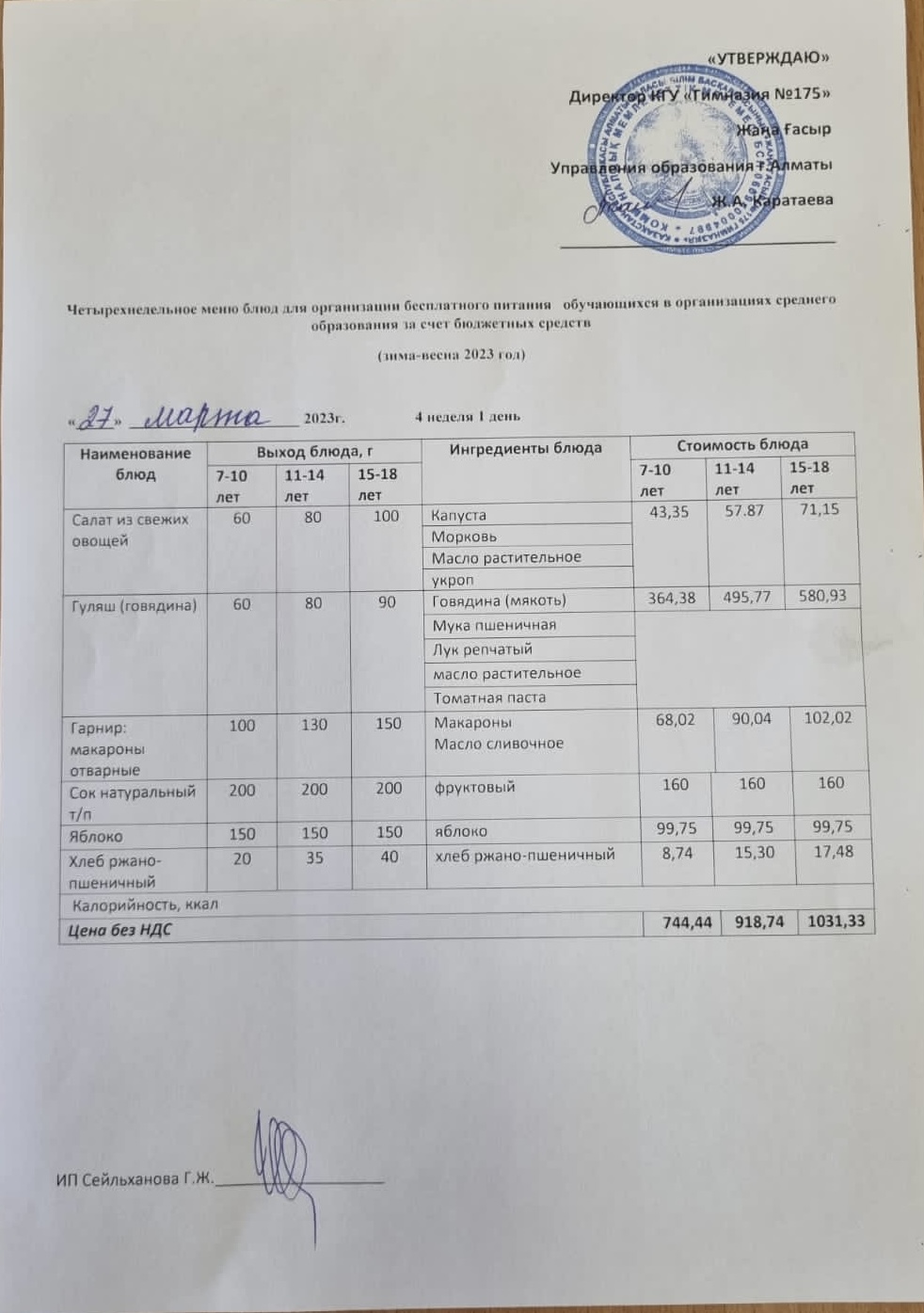 Ас мәзірі 2023-2024