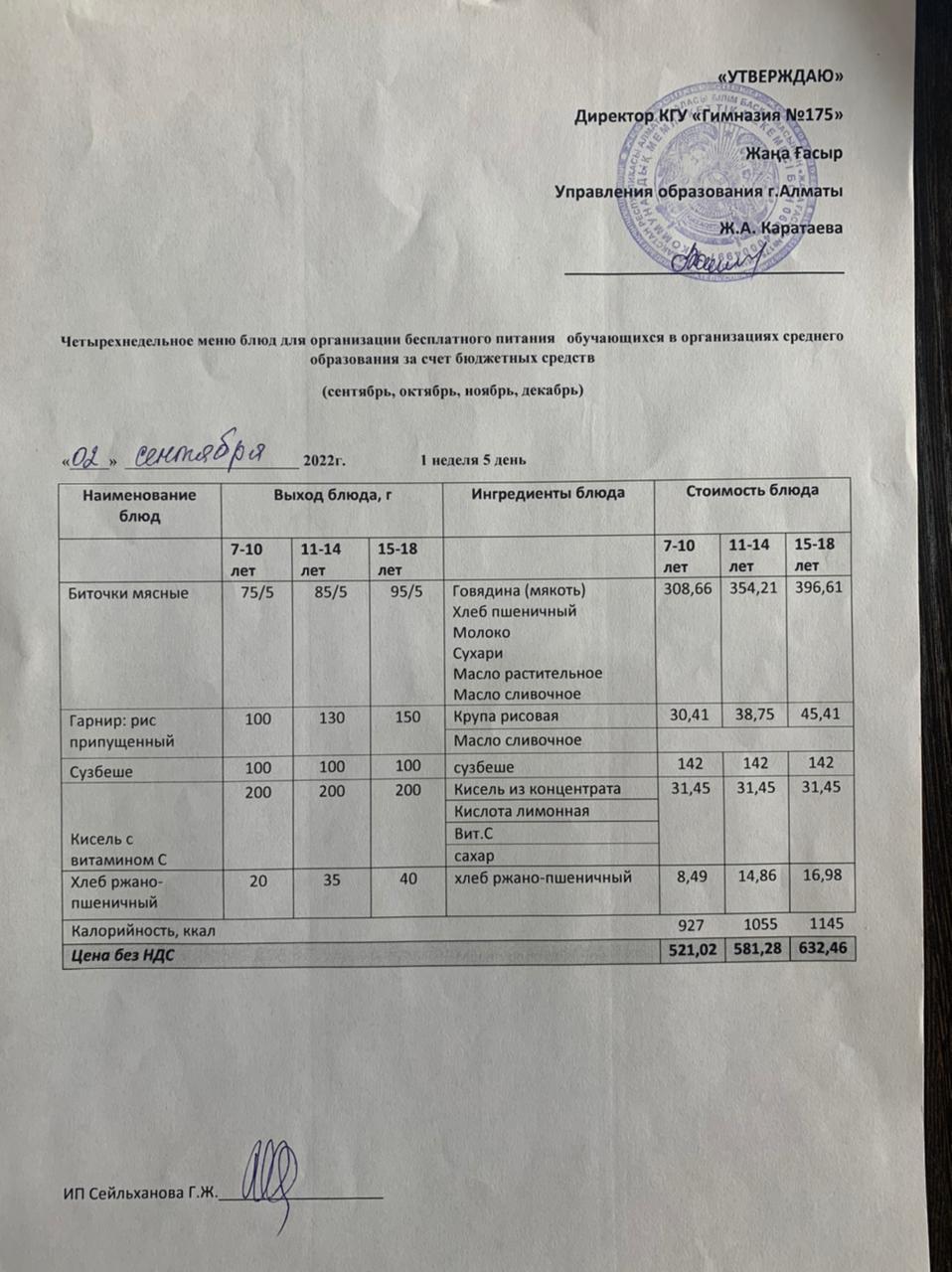 » Ас мәзірі 2022-2023