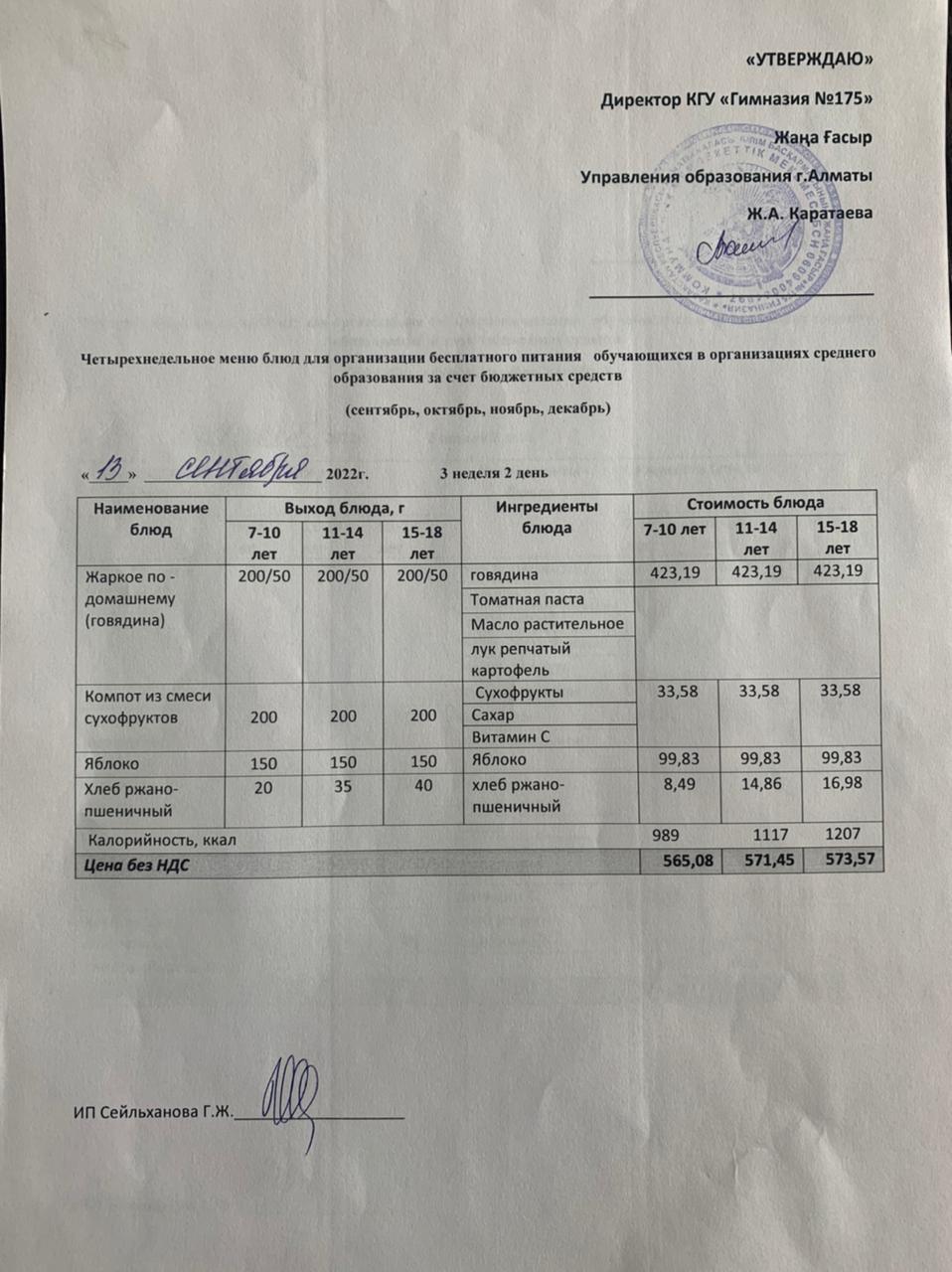 » Ас мәзірі 2022-2023