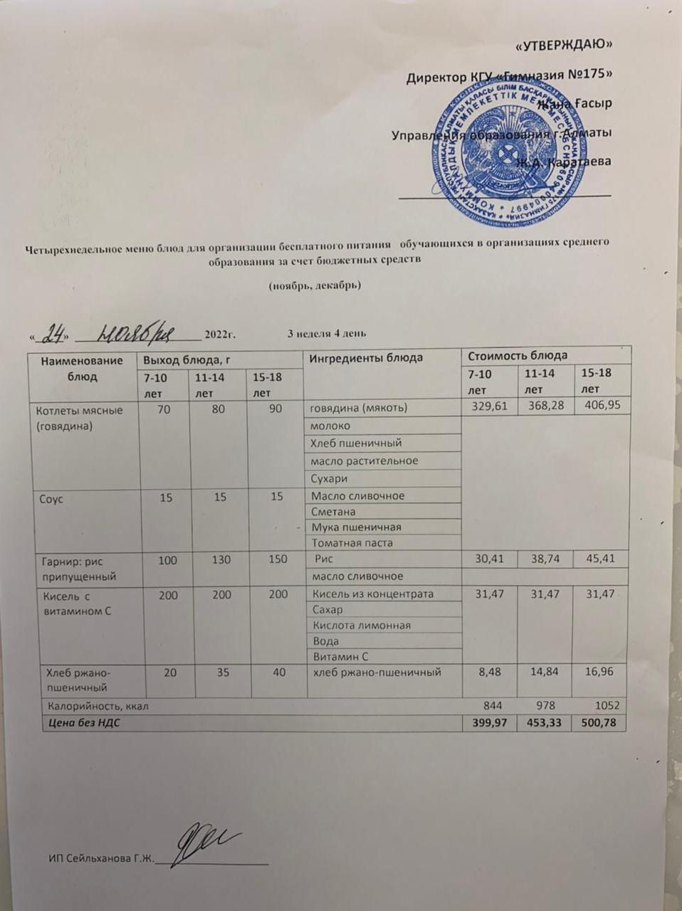 Ас мәзірі 2024-2025