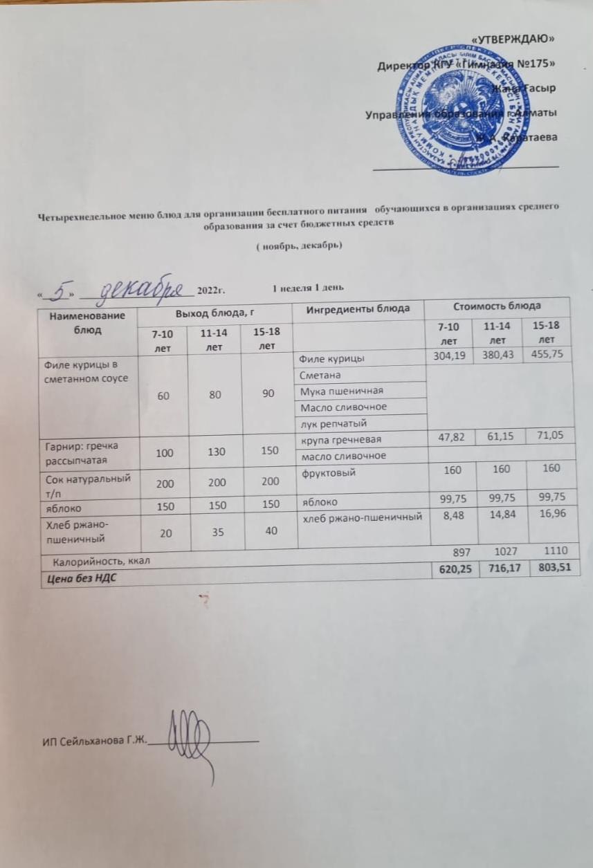 Ас мәзірі 2024-2025