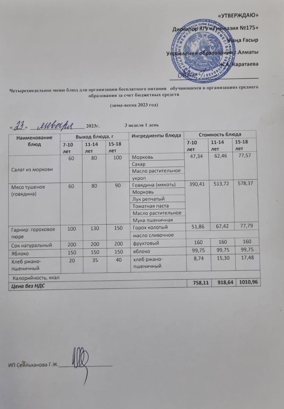 Ас мәзірі 2023-2024
